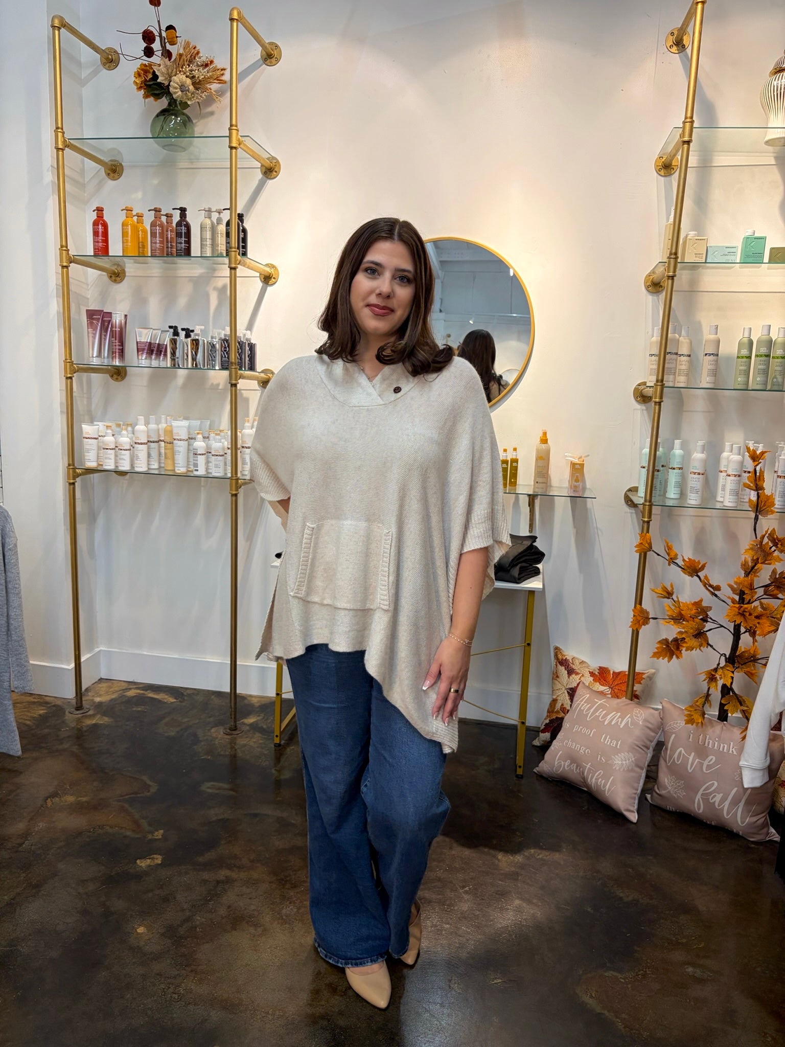 Collared Poncho in Oatmeal
