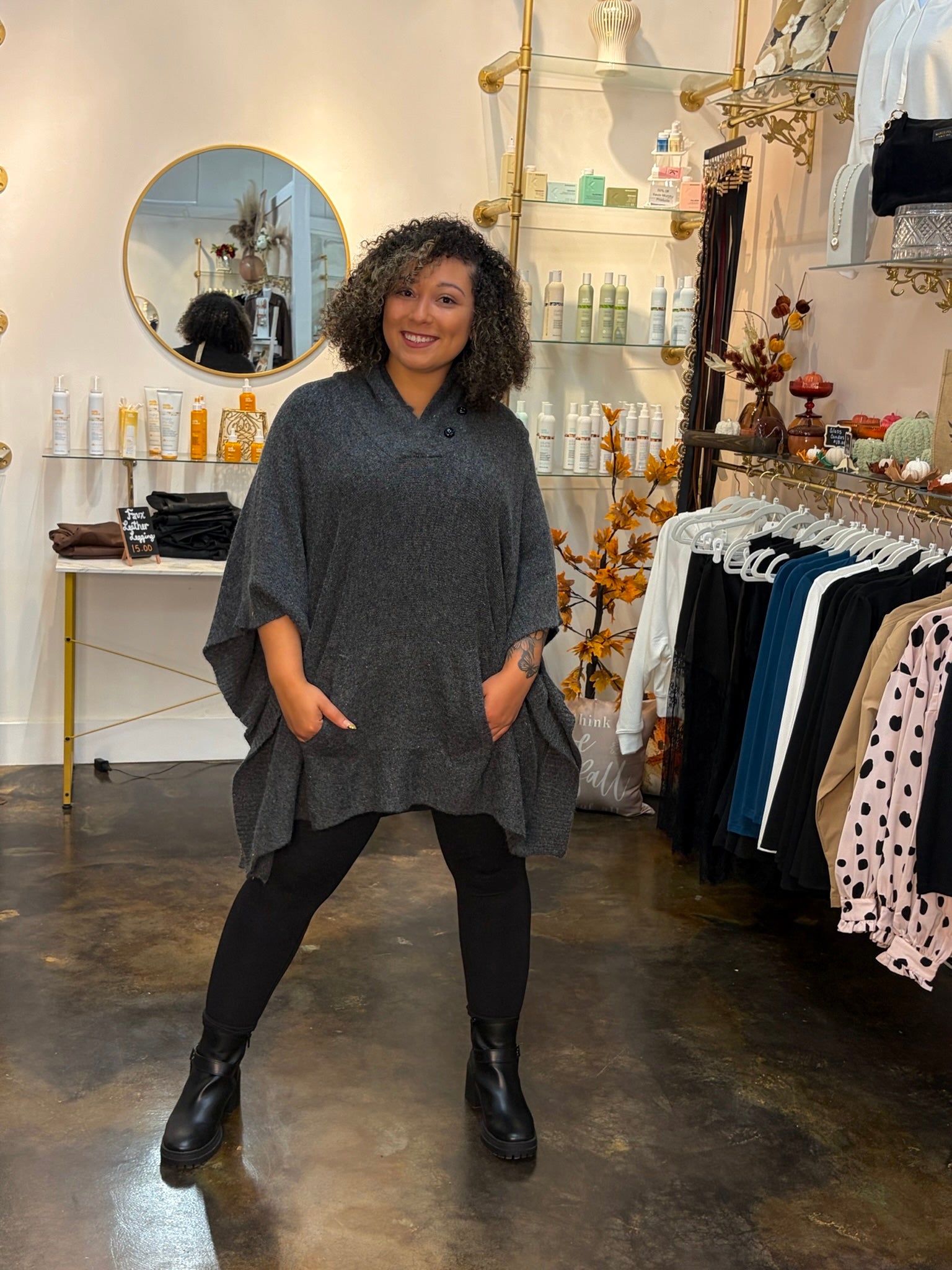 Collard Poncho in Charcoal