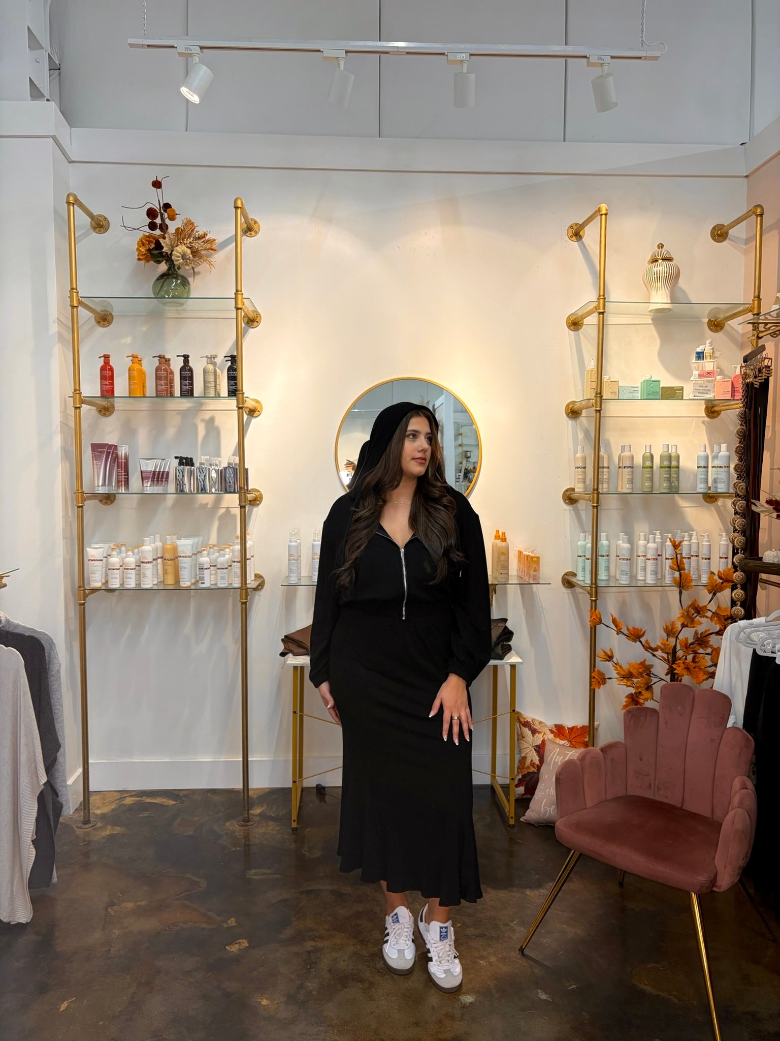 Ribbed Knit Zip Up Hoodie